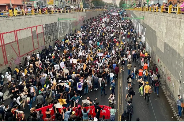 Bajo la histórica consigna de “2 de Octubre no se olvida”, la marcha se enfila rumbo a las calles del Centro Histórico ocupando el Eje Central.
