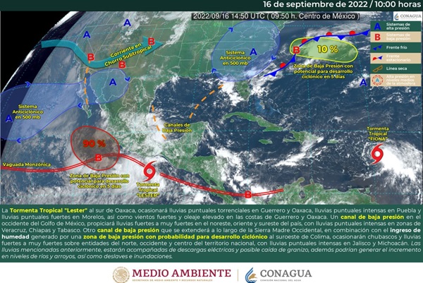Culiacán, Sinaloa, a 16 de septiembre de 2022.- En seguimiento a las labores de monitoreo que realiza el Instituto Estatal de Protección Civil de Sinaloa que dirige Aurelio Roy Navarrete Cuevas, se determinó que, con fundamento en el reporte climatológico efectuado por la Comisión Nacional del Agua, se determinó que la recién formada Tormenta Tropical «Lester», no representa peligro para Sinaloa, aunque se mantiene el pronóstico de lluvias fuertes de acuerdo a la última información disponible.